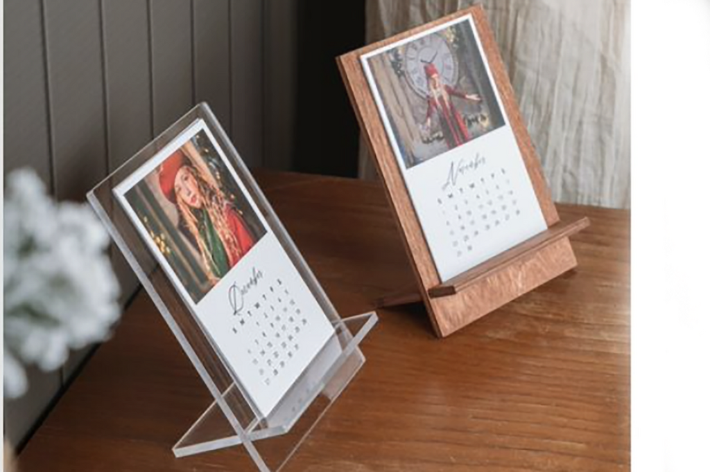 El porta calendario es una opción perfecta para decorar tu escritorio y tener siempre recuerdos felices con cada nuevo mes. Incluye un soporte de madera o acrílico y 6 impresiones a doble cara.