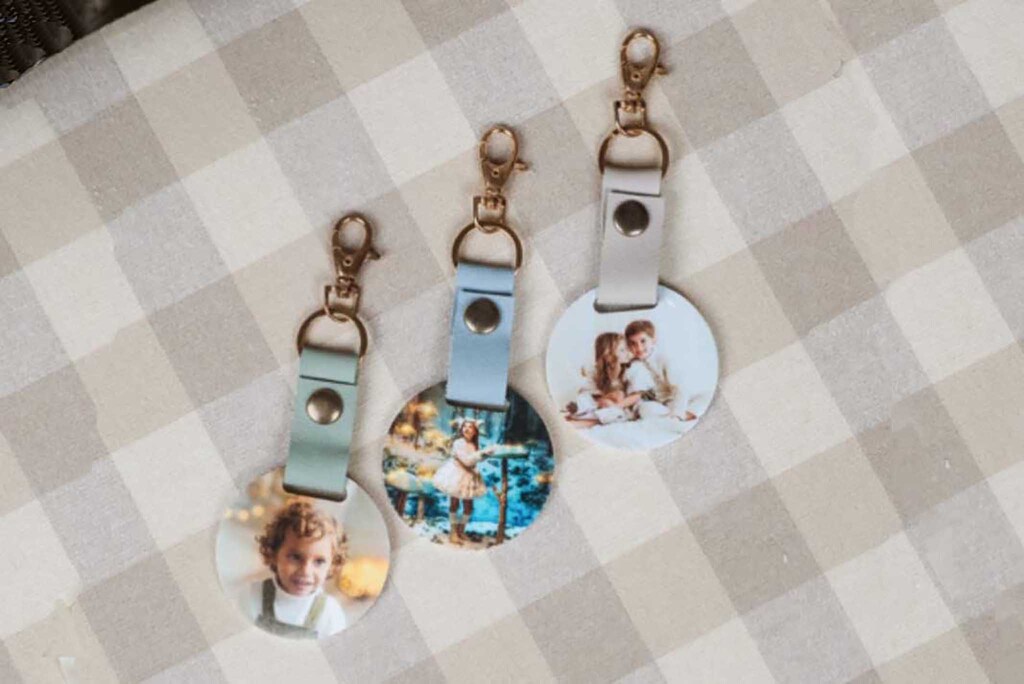 El llavero es un producto útil y personalizable para llevar siempre un buen recuerdo en el bolsillo. Además de poder llevar una foto de la sesión, puedes elegir el color del cuero toscano para la cuerda.