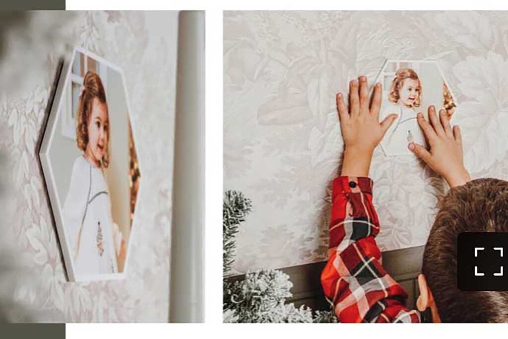 Con el cuadro hexagonal nunca fue tan fácil personalizar la decoración de tu hogar. Una forma creativa y moderna de esparcir recuerdos por la casa como si cada pared contara una historia de Navidad.